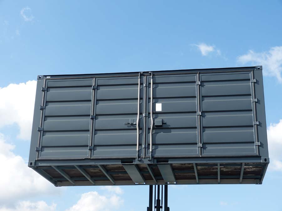 Tento skladovací kontejner má čtyřkřídlé dveře po celé délce s ochranou proti vloupání.