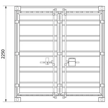 - Manipulace: 4 úchyty na střeše pro zvedací háky. Podstavec s průchodem pro vysokozdvižný vozík s dlouhými vidlemi (250 cm).