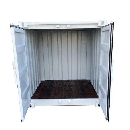 Náš 6stopý skladovací kontejner má rám z 3 mm silných, zcela svařovaných ocelových profilů. Stěny a strop jsou vyrobeny z 1,5 mm silného válcovaného plechu a podlaha z 25 mm silného, proti vlhkosti ošetřeného masivního dřeva. Je vybaven ochrannou klapkou pro visací zámek.