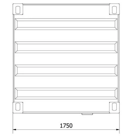 - Manipulace: 4 úchyty na střeše pro zvedací háky. Podstavec s průchodem pro vysokozdvižný vozík s dlouhými vidlemi (250 cm).